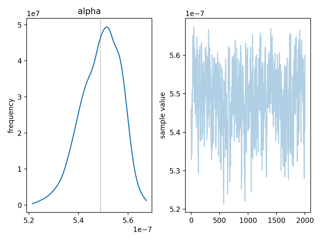 fig = samples.traceplot(("alpha", ))