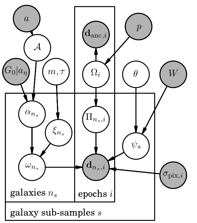 or this example for inferring cosmic shear, where there are multiple overlapping sets and multiple hierarchies: